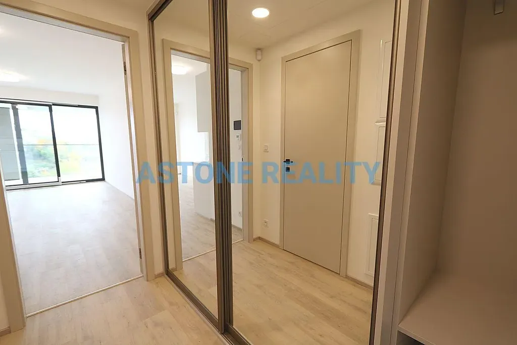 Exkluzivně Vám nabízíme k pronájmu luxusní byt s klimatizací s dispozicí 1+kk s balkonem a s garážovým stáním v nové rezidenci Parková čtvrť v Praze 3, Žižkov, v ulici Šrámkové. Prostorný byt o velikosti 34 m2 a s balkonem 9 m2 se nachází v pátém nadzemním podlaží budovy se dvěma výtahy. Je nabízen částečně zařízený, kvalitní, nová kuchyňská linka je vybavena všemi vestavěnými spotřebiči zn. Electrolux včetně myčky, v koupelně se nachází sprchový kout, toaleta a pračka, v předsíni velké zrcadlové vestavěné šatní skříně. Bezpečnostní hliníková francouzská okna s elektrickými venkovními žaluziemi na dálkové ovládání směřují na jih do udržovaného vnitrobloku se zelení. Kvalitní vinylové podlahy v kombinaci s dlažbou, bezpečnostní vstupní dveře. Podlahové vytápění, řízená rekuperace, datové optické rozvody pro vysokorychlostní internet. V celém bytě úsporné LED osvětlení. K bytu náleží garážové stání za 1.500,- Kč měsíčně /nutno pronajmout/. Vstup do všech prostor domu na čip, kamerové systémy. Skvělá dopravní dostupnost do centra, pěší chůzí 5 min na metro nebo tramvají na metro A Želivského. V okolí veškerá občanská vybavenost, škola, školka, relaxační a sportovní centrum Olšanka, poliklinika. Majitel preferuje nájemce bez zvířat, nekuřáky. K dispozici od 31.5., neplatíte provizi RK.
