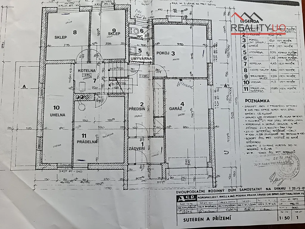 V suterénu domu se nachází jeden pokoj, sociální zařízení a garáž.