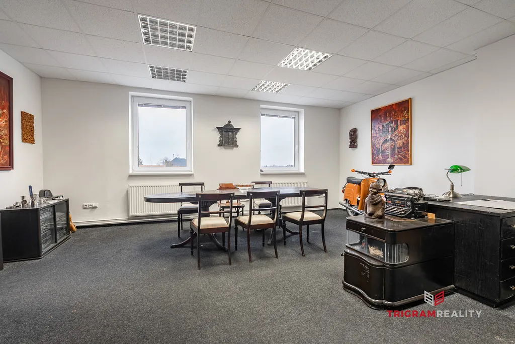 Prostory se nacházejí v 1. patře rozsáhlé administrativní budovy a sestávají ze dvou nevybavených uzamykatelných kanceláří.
