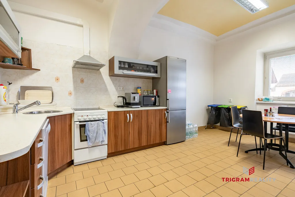 Jedna kancelář má výměru cca 33 m², druhá, průchozí, cca 25 m². Alternativě lze za příplatek využít další kancelář o cca 20 m², kde je v současné době uložen archiv.