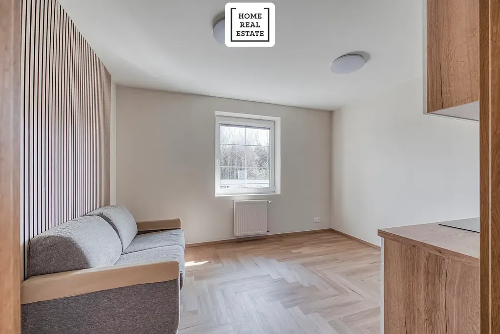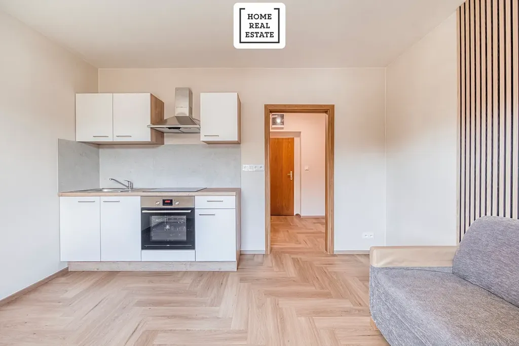 V základní ceně nájmu je jednotka vybavena kuchyňskou linkou. Za příplatek 1 000 Kč měsíčně je možné si jednotku pronajmout i ve variantě plného vybavení, která zahrnuje moderní rozkládací pohovku o šířce 140 cm včetně kvalitní matrace od renomovaného italského výrobce BK Italia, jídelní stůl, dvě židle a šatní skříň.