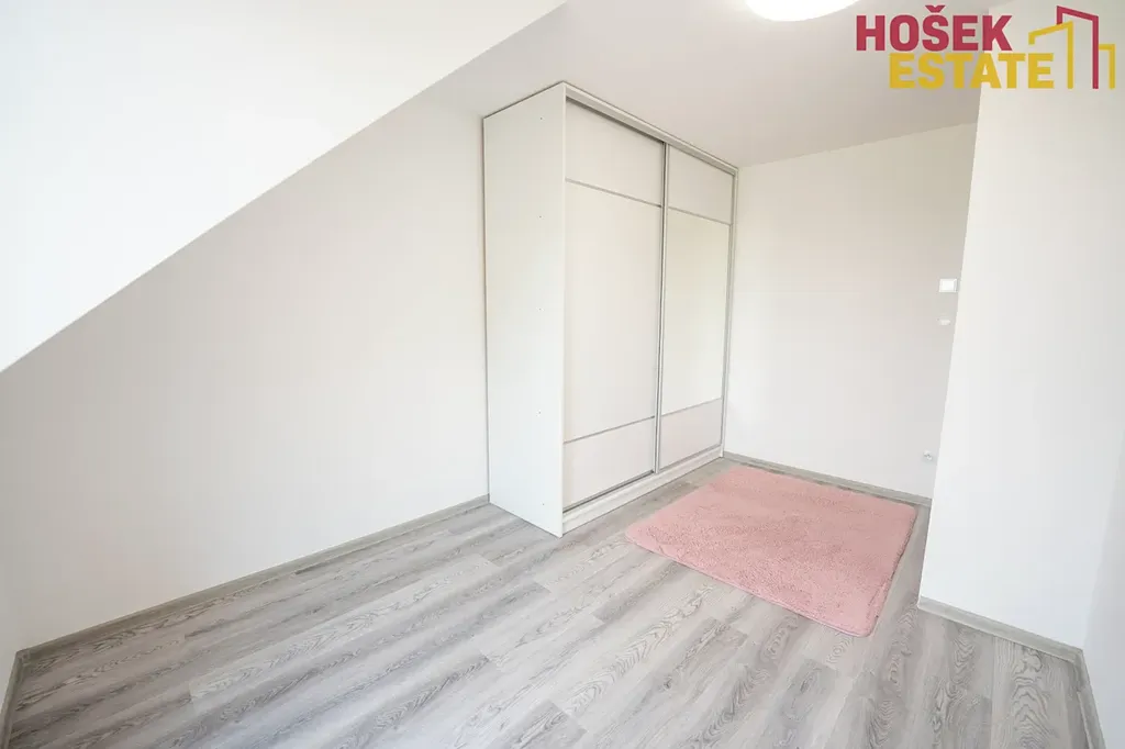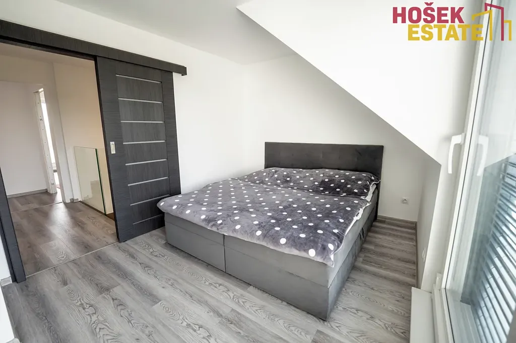V podkroví se pak nachází 2 dětské pokoje, ložnice a hlavní koupelna se sprchovým koutem. Na půdě je pak prostor pro uložení sezónních věcí.
