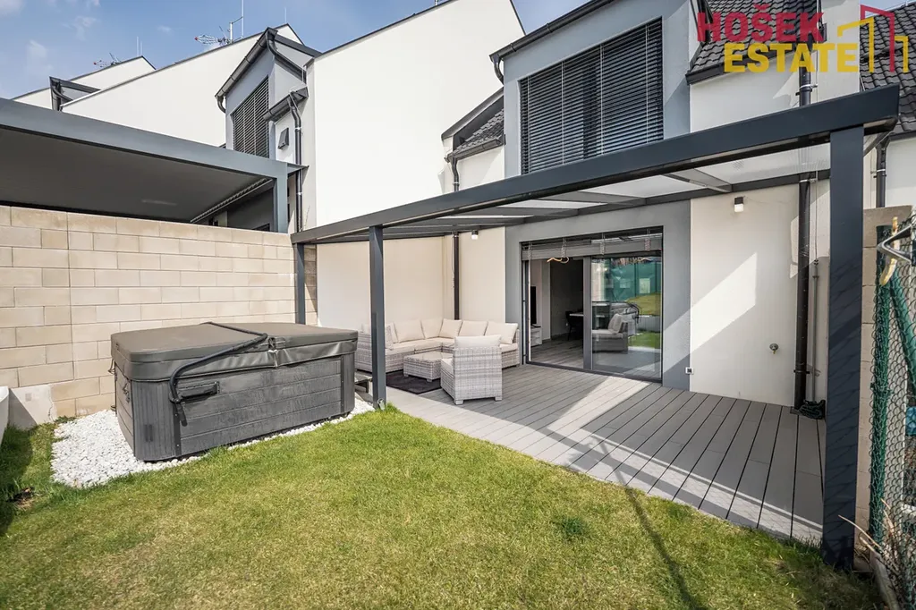 Zahrada o velikosti 124m² je tak akorát velká na trávení volného času s rodinou a nestrávíte zde celé víkendy její údržbou. Pokud máte rádi odpočinek po náročném dni, jistě oceníte vířivku nebo terasu s pergolou, která je ideální pro grilování a trávení volného času.
