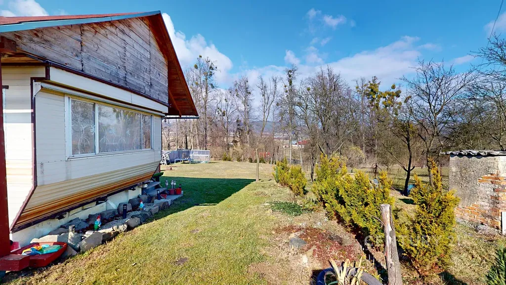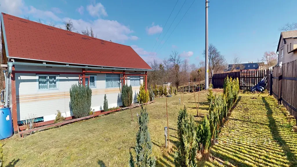 Celková velikost pozemku je 948 m². To je dost místa na bazén, ovocný sad, dětské hřiště i pořádný kus trávníku. Na pozemku stojí mobilheim 3+kk o zastavěné ploše 47 m², který je připojen na elektřinu a vodovod. Nejde o žádnou kůlnu na nářadí, ale o zázemí, které můžete využívat celoročně.