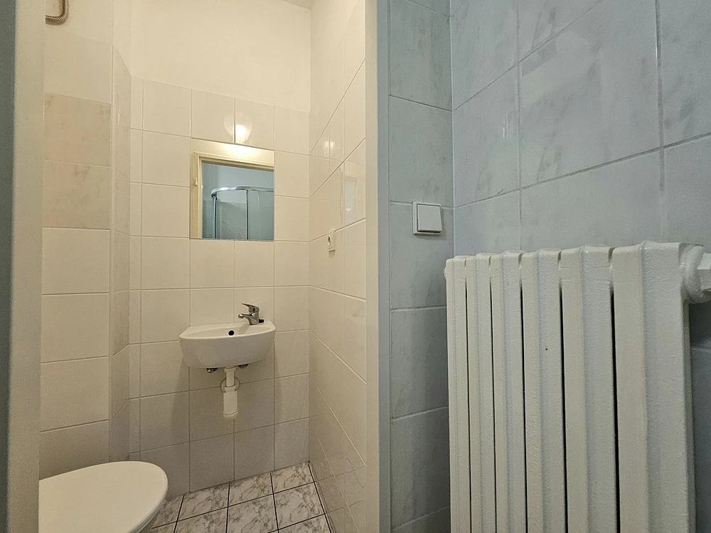 Byt o celkové ploše 25 m² se nachází ve 2. patře cihlového domu s výtahem.