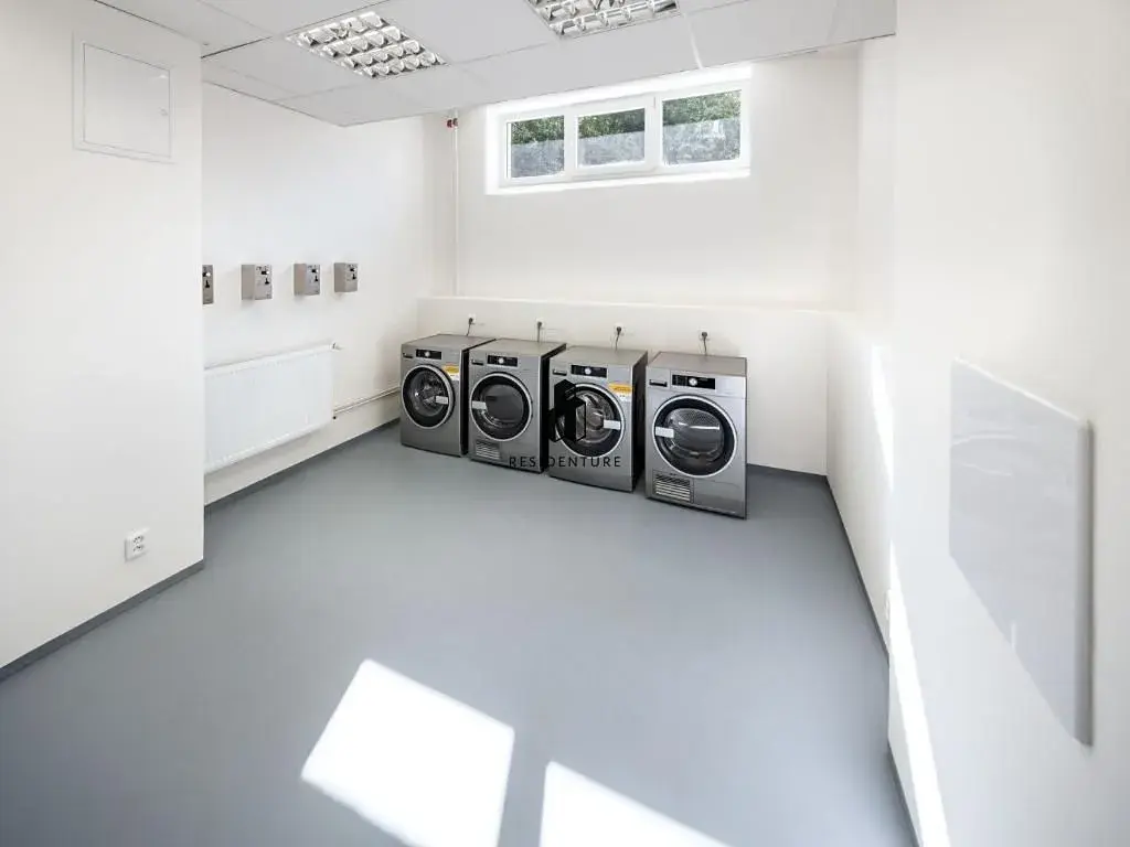 Obyvatelé domu mohou využívat i společné zázemí rezidence, například zahradu s grilem, komunitní zahrádku pro pěstování bylinek a zeleniny nebo TV room. K dispozici je rovněž recepce s nepřetržitým provozem, prádelna, sušárna a fitness centrum.