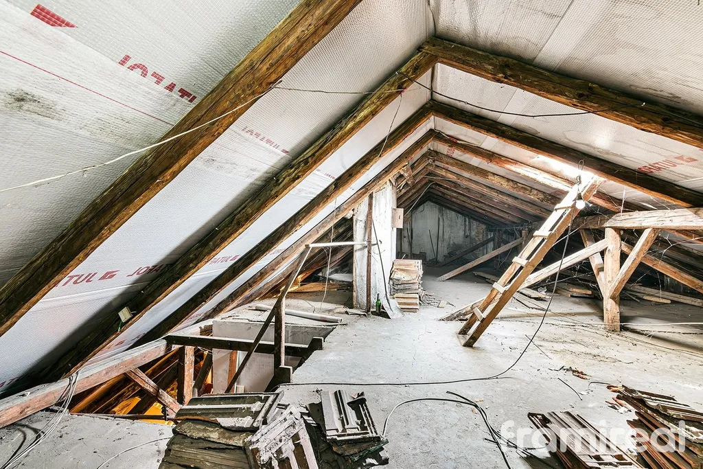 Velkou výhodou je možnost současné koupě bytu o podlahové ploše 50 m² nacházejícího se přímo pod půdním prostorem, který bude k dispozici od května po ukončení stávajícího nájmu. Spojením obou částí lze vytvořit atraktivní mezonetový byt s výhledem na Brno nebo realizovat více dispozičních variant dle investičního záměru. Koupě bytu zároveň výrazně usnadňuje řešení vedení inženýrských sítí pro budoucí úpravy.