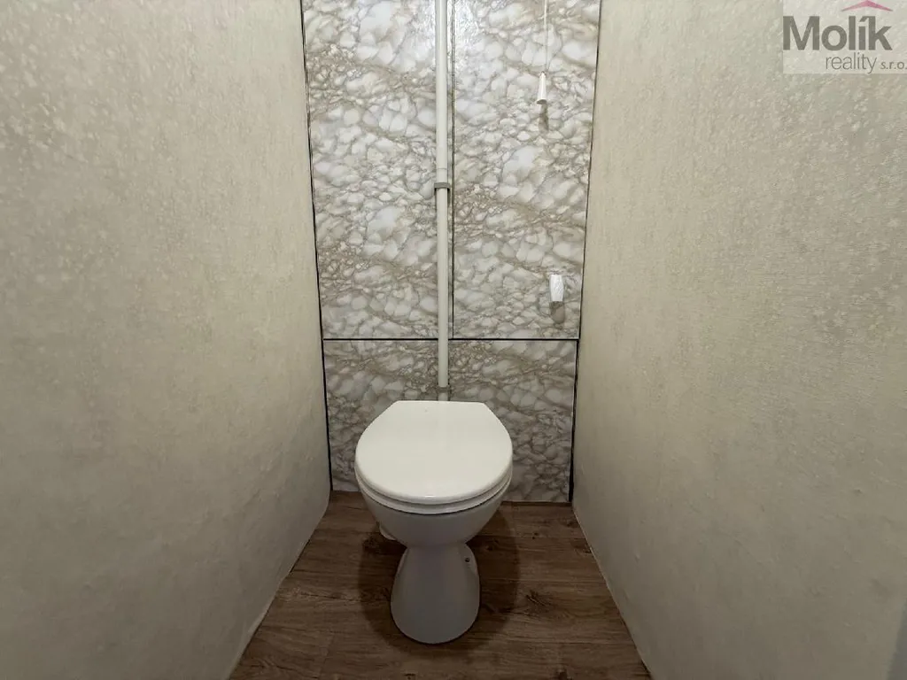 Bytová jednotka je v udržovaném stavu, vyměněná kuchyňská linka, koupelna je oddělena od toalety.