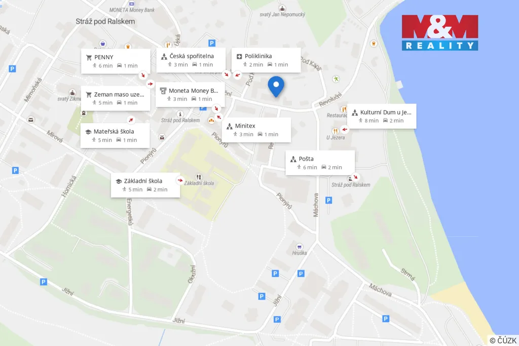 Lokalita je perfektně vybavená – škola, školka, obchody i poliklinika jsou v docházkové vzdálenosti, přičemž blízkost jezera, cyklostezek, plaveckého bazénu a sportovišť zaručuje aktivní a příjemný životní styl. Díky kombinaci klidného prostředí, kompletní občanské vybavenosti a kvalitního provedení bytu je tato nemovitost skvělou volbou pro jednotlivce, mladý pár, menší rodinu či investici k pronájmu.