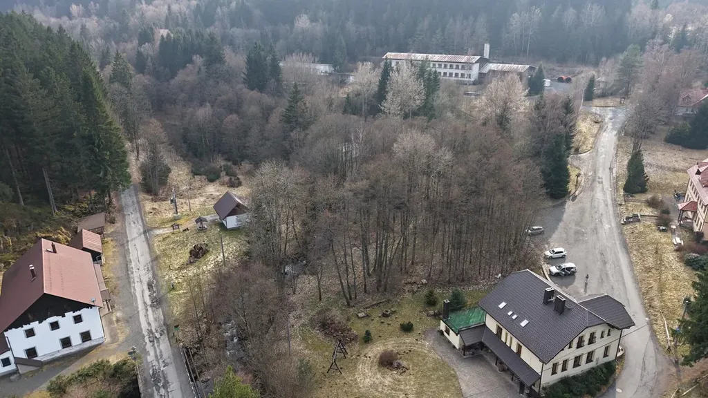 Celková plocha děleného pozemku je 5 900m2. Pozemek se prodává včetně projektu objektu k rekraci - apartmány.