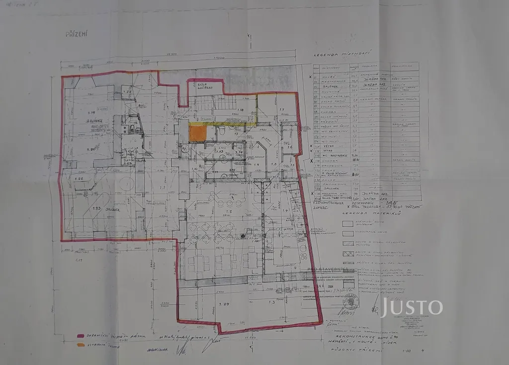 Součástí prostor je zázemí zahrnující kuchyň, šatnu, úklidovou místnost a sociální zařízení. K dispozici je také samostatný salonek s vlastní toaletou, ve kterém jsou instalována krbová kamna.