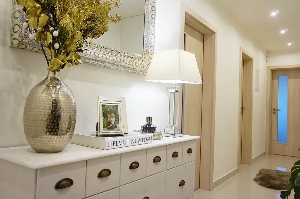 Dispozice bytu zahrnuje prostornou vstupní chodbu s vestavěnou skříní, obývací pokoj s moderním kuchyňským koutem, samostatnou ložnici a koupelnu s vanou a toaletou. Podlahy tvoří kombinace velkoformátové keramické dlažby a třívrstvé dřevěné plovoucí podlahy. Vytápění je centrální. Velkoformátová hliníková okna zajišťují dostatek denního světla.