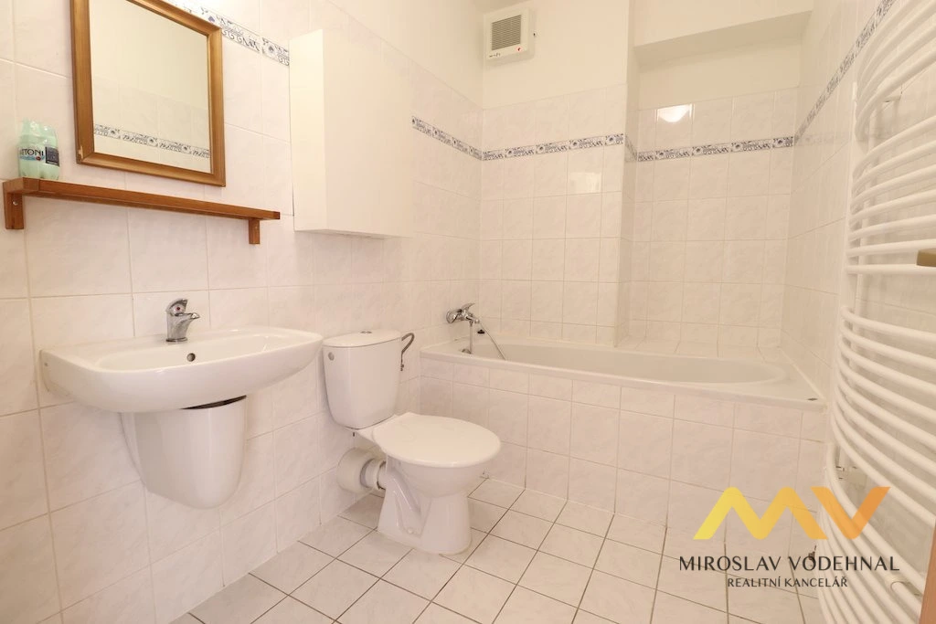 Jedná se o bezbariérový, tichý a slunný byt po částečné rekonstrukci (kuchyňská linka, podlaha) s výhledem do přírody. Dispozice: obývací pokoj s kuchyňským koutem, koupelna s WC, předsíň. Kuchyňská linka vybavena el. troubou a sklokeramickou deskou, lednicí d mrazákem. Koupelna s vanou, umyvadlo se zrcadlem a pračka. V předsíni velká vestavěná skříň na míru. Klidné bydlení, okna orientována na J-Z. K dispozici sušárna, kolárna, sklep není. Kompletní občanská vybavenost, MHD, parkování před domem bez poplatků. Bez zvířat. Internet zaveden (není v ceně nájmu).