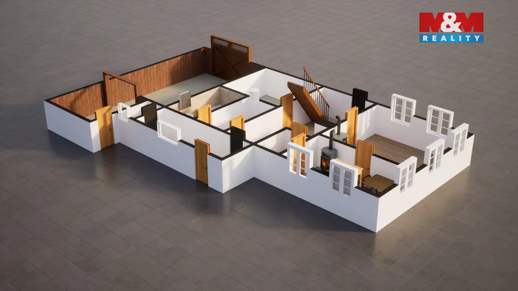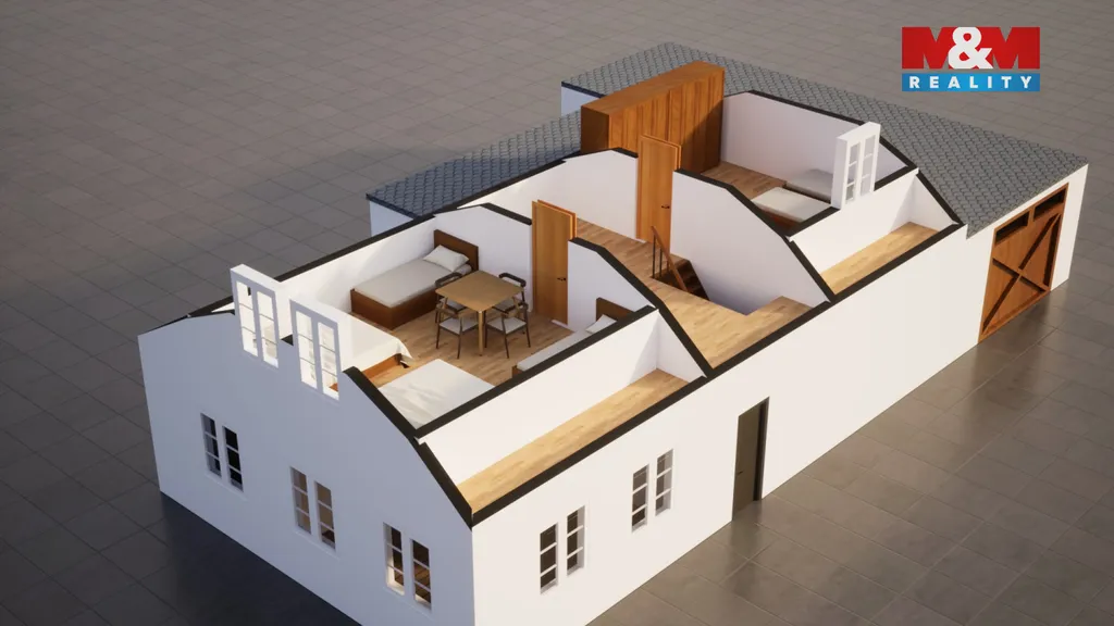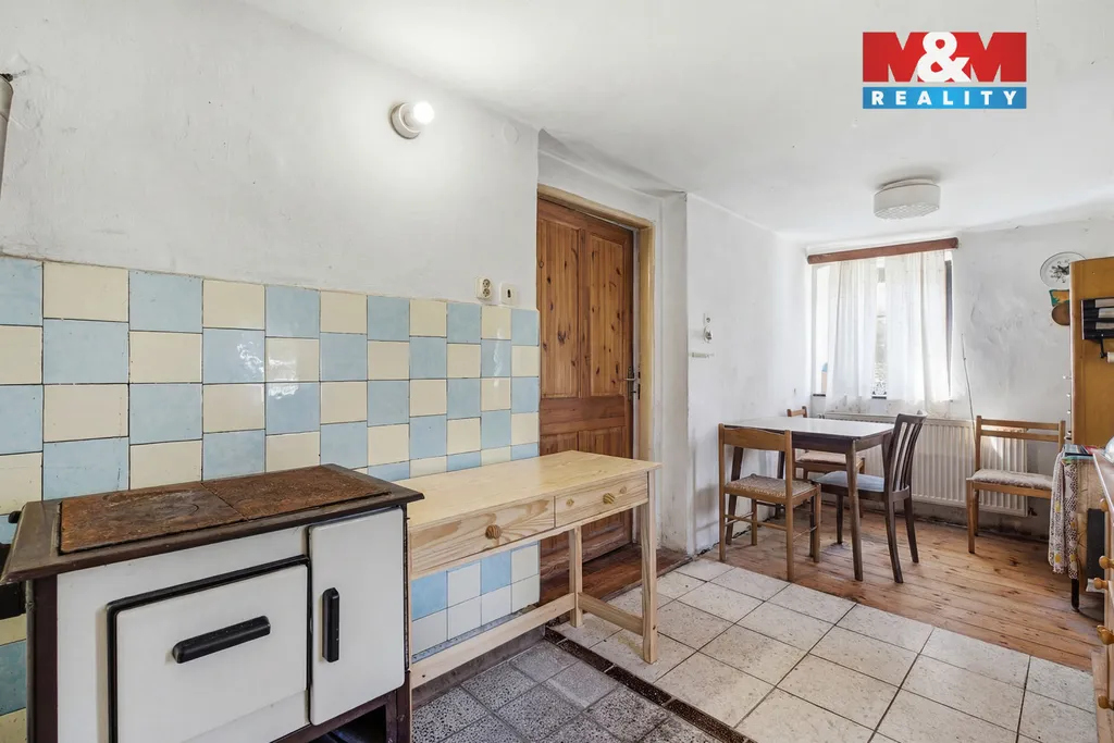 Z chodby je vstup na zahradu zadním vchodem a také dřevěné schodiště do patra, kde se nachází dva pokoje. Nad nimi je menší půdní prostor vhodný k dalšímu využití. Nemovitost nabízí zajímavý potenciál pro rekonstrukci dle vlastních představ v krásném a klidném prostředí.