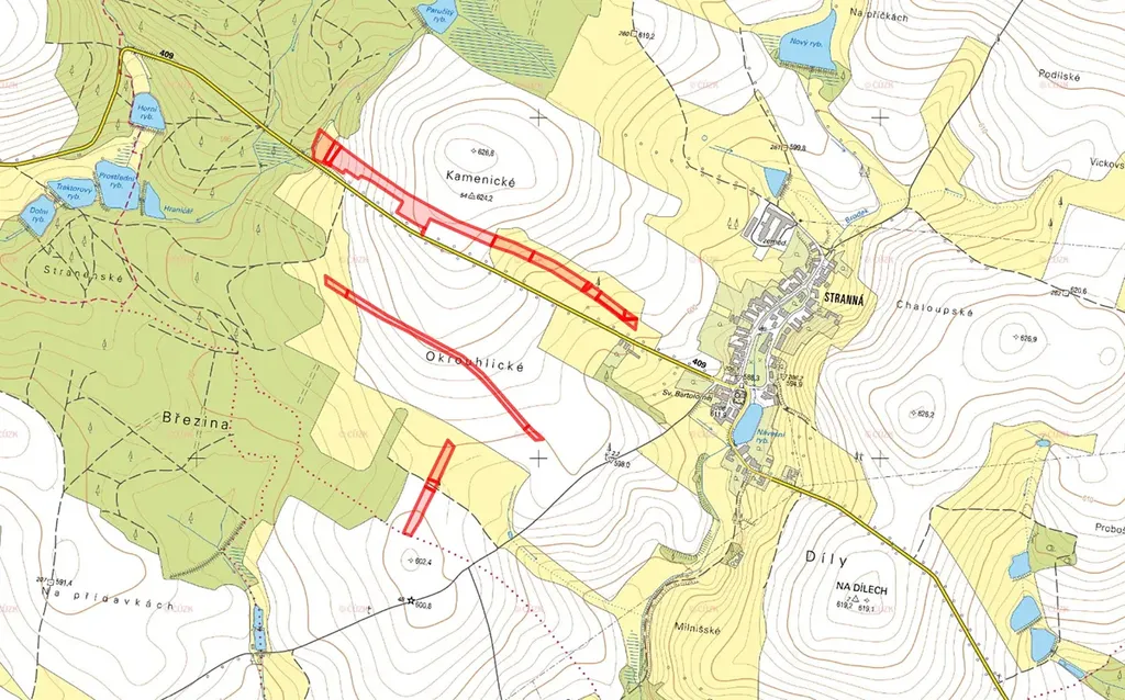V katastrálním území Stranná u Žirovnice, okres Pelhřimov, nabízím k prodeji komplex zemědělských pozemků ve výlučném vlastnictví.