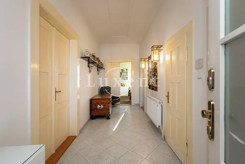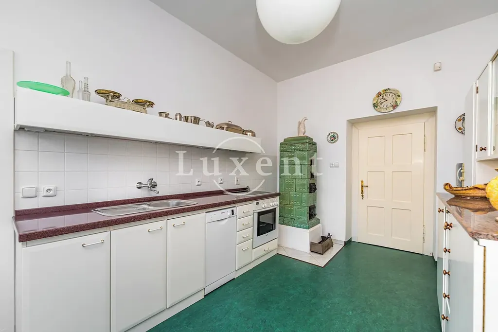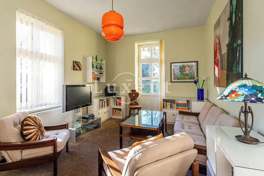 První patro disponuje stejnou plochou 121,10 m² a nabízí světlé, prostorné místnosti s vysokou variabilitou využití – vhodné pro soukromé apartmány, pracovny, ložnice nebo další funkční zóny. Citlivě zrekonstruované podkroví o ploše 72,16 m² přináší charakteristické prvky krovu a intimní atmosféru, což jej předurčuje pro privátní apartmá, ateliér, pracovnu či dětské nebo záložní pokoje. Kompletně podsklepený suterén poskytuje nadstandardní technické a úložné zázemí s širokými možnostmi dalšího využití.