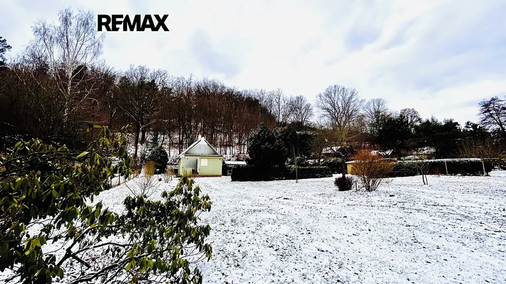 Pozemek nabízí množství zázemí: kůlna, altán pro posezení, sklípek pro skladování potravin a nápojů, garáž/sklad a dřevník. Lokalita poskytuje klidné a soukromé prostředí v polosamotě, v bezprostřední blízkosti lesa a potoka, ideální pro odpočinek, pěší i cyklistické výlety. Přístupová komunikace je zpevněná, dostupnost do Prahy je pohodlná, v okolí dobré dopravní spojení a volnočasové možnosti (např. sjezdovka Chotouň v okolí).