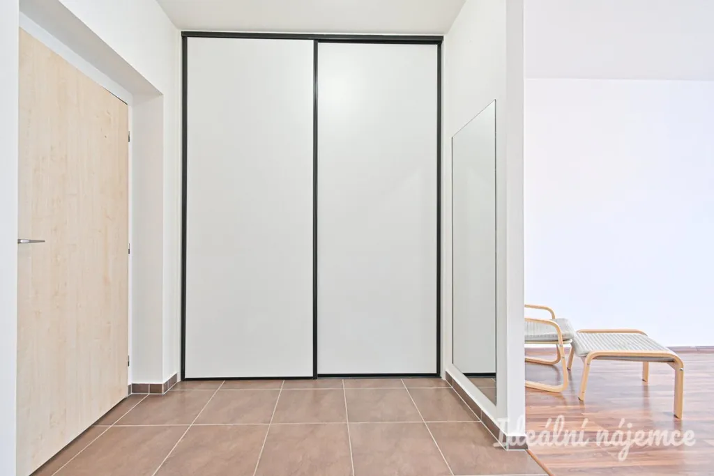 Dispozice nabízí prostorný obytný pokoj s kuchyňským koutem, koupelnu s WC a praktický vstupní prostor. Kuchyně je vybavena spotřebiči jako, lednice, trouba, mikrovlnná trouba, digestoř, myčka a pračka. Další výhodou jsou vestavěné skříně s dostatkem úložného prostoru.