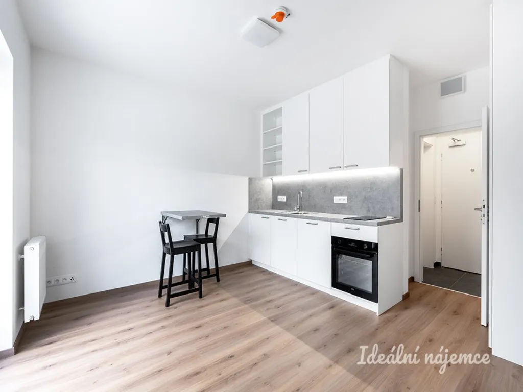 Kuchyňská linka je plně vybavená spotřebiči – indukční varná deska, trouba s horkovzduchem, myčka (šířka 60 cm) a lednice. Po dohodě je možné zdarma byt dovybavit postelí nebo gaučem a pračkou.