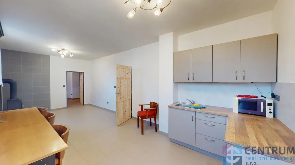 Byt se nachází v klidné obci v zemědělské stavbě s venkovským charakterem. Dispozice nabízí prostornou hlavní místnost s kuchyňským koutem, dva propojené pokoje, jeden samostatný neprůchozí pokoj, dvě prostorné předsíně a koupelnu se sprchovým koutem a toaletou, což poskytuje dostatek prostoru i pro více osob.