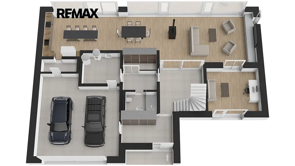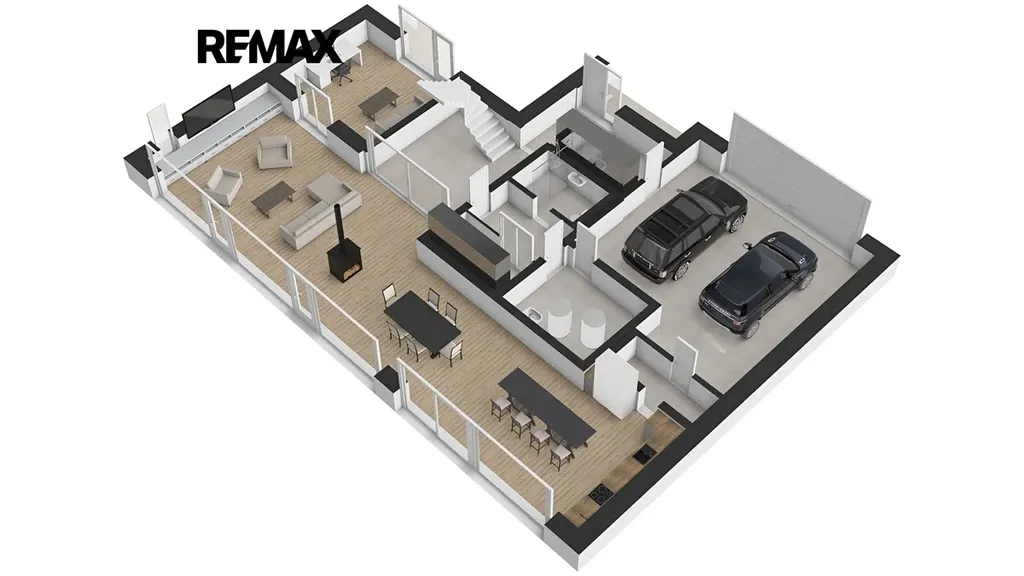 - obývací prostor s kuchyňským koutem (89 m²), s přímým vstupem na terasu a zahradu
