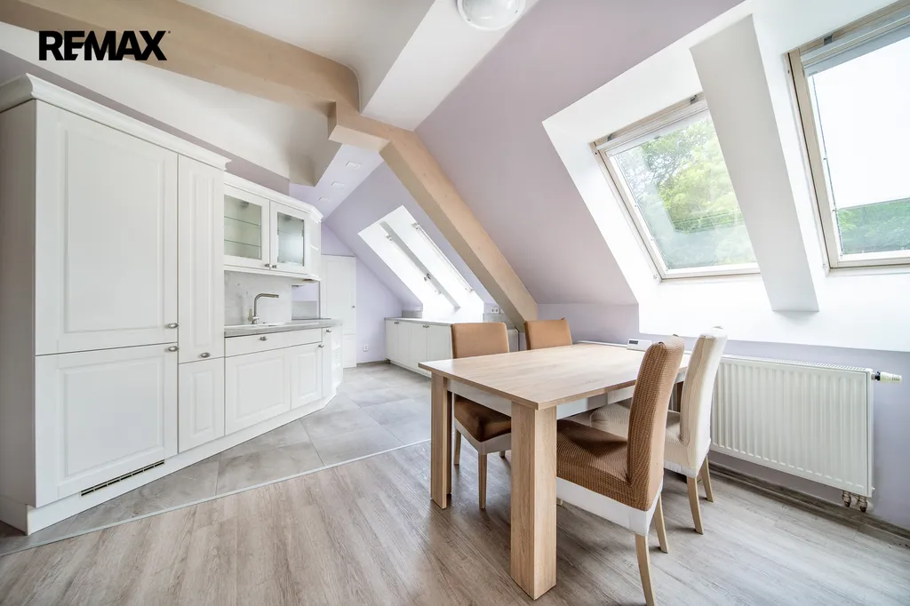K pronájmu nabízíme prostorný mezonetový byt o dispozici 6+1 a celkové ploše 145 m² s parkovacím místem, situovaný ve 3. nadzemním podlaží historické vily bez výtahu v lokalitě Na Vyhlídce v Karlových Varech.