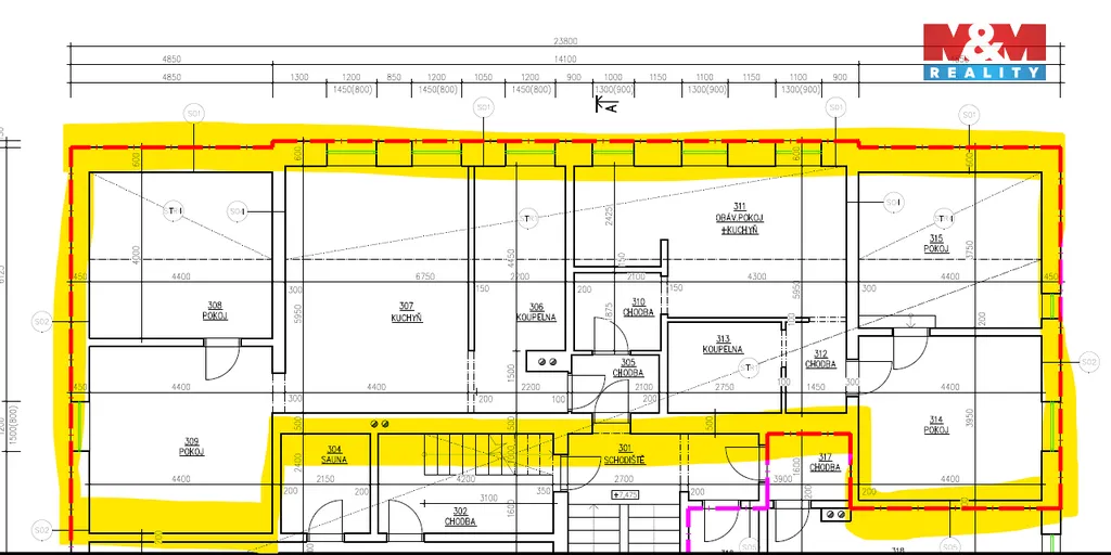 ?? Celkem cca 123 m² (7+kk)Nejedná se o celé patro – po stranách podlaží jsou vstupy do půdních prostor, které nejsou součástí