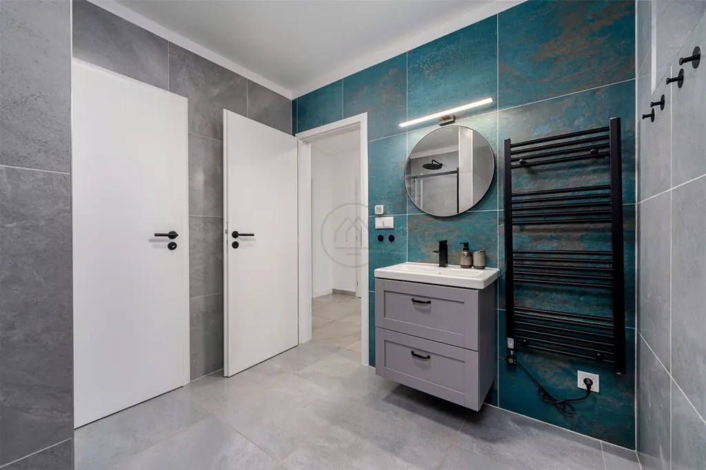 Z obou jednotek je zajištěn vstup na betonovou terasu a vlastní oplocenou zahradu se zahradním domkem, která nabízí ideální zázemí pro relaxaci. Jedná se o novostavbu z roku 2023 s energetickou náročností třídy B – velmi úsporná. Interiér i technologie odpovídají vysokému standardu: vytápění je napojeno na chytrou domácnost LOXONE pro efektivní správu na dálku a přístup do apartmánů zajišťují chytré zámky Nuki. Parkování se nachází přímo před domem.