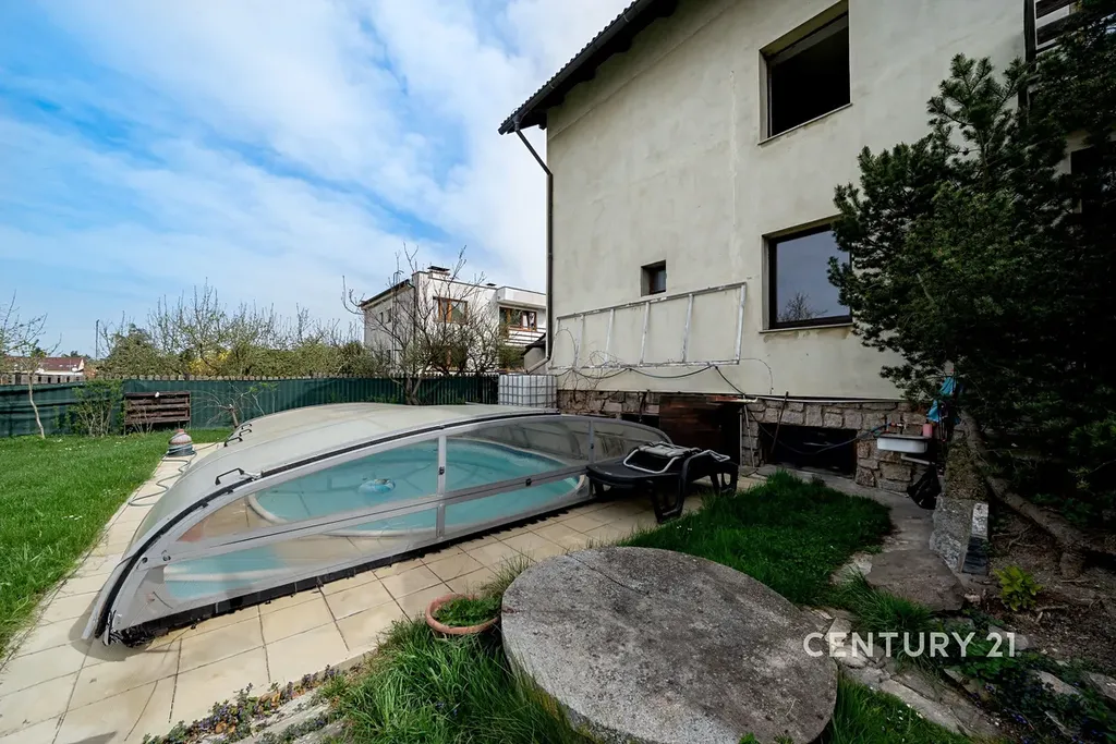 K bytu patří také mimořádné zázemí a exteriérové prvky, které u běžných bytů nenajdete. Součástí prodeje je nadstandardně prostorná garáž pro dvě osobní auta s dostatkem úložných prostor a regálů. K relaxaci slouží podíl na společné zahradě o celkové výměře 739 m², přičemž exkluzivně k tomuto bytu patří bazén, který využívají pouze jeho majitelé. Na zahradě se dále nachází zděný zahradní domek a pergola s venkovní kuchyní, což z bytu dělá perfektní místo pro rodinný život i setkávání s přáteli. Tato nemovitost je ideální volbou pro ty, kteří hledají komfort rodinného domu s výhodami bytu a chtějí žít v obklopení přírody s rychlým spojením do velkoměsta.