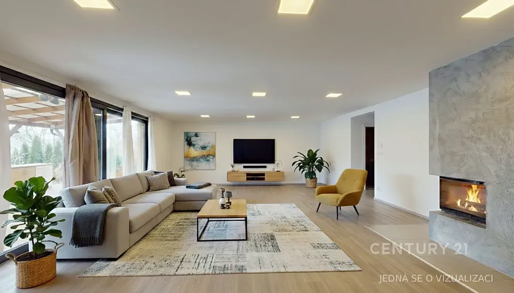 V domě je velký obývací pokoj s kamny kde si můžete užít klidný večer při praskání polínek. Z obýváku je výstup na terasu, která přirozeně rozšiřuje obytný prostor ven – na posezení, večeři při hvězdách nebo klidné chvíle jen tak s výhledem do vaší zahrady.