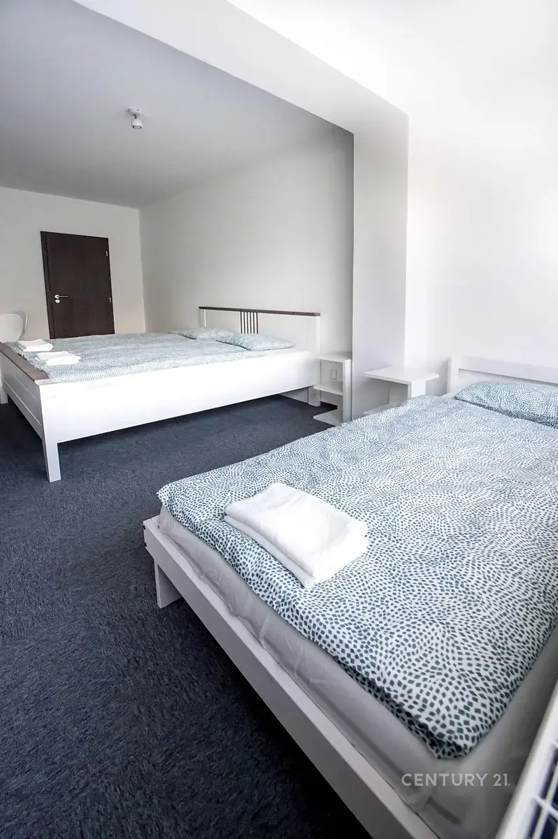 Nabízíme vám k prodeji řadový rodinný dům v Mostě Souši. Dům je po celkové rekonstrukci upravený na ubytovací zařízení. Je zateplený, má čtyři nadzemní podlaží. Výměra parcely je 279 m², vnitřní užitná plocha je 312 m². Nemovitost disponuje 26 lůžky. V prvním nadzemním podlaží jsou vybudovány dva apartmány (čtyřlůžkový a třílůžkový). Oba apartmány mají koupelnu a WC. V třílůžkovém apartmánu je i kuchyňská linka a má venkovní terasu s přístupem na zahradu. V druhém nadzemním podlaží jsou čtyři pokoje: dvoulůžkový, třílůžkový (tyto pokoje mají společné WC a koupelnu). Dále jsou tu dva třílůžkové pokoje s vlastní koupelnou i WC. Ve třetím nadzemním podlaží se nacházejí tři pokoje. Jeden je dvoulůžkový, zbývající dva jsou třílůžkové. Tyto pokoje mají společnou terasu. Na tomto patře je společná kuchyně a jsou tu dvě koupelny s WC. V přízemí se nachází garáž, tři místnosti, technická místnost a prádelna. Tato nemovitost má polohu na okraji Mostu, přímo naproti vjezdu do autodromu. Nedaleko je nádrž Matylda, která nabízí spoustu volnočasových aktivit, blízko je to i k mosteckému jezeru a na hrad Hněvín. Veškerá občanská vybavenost je v centru města, které je poblíž. Nemovitost je vhodná jako investice s velkým potenciálem, prodává se včetně vybavení. Zavolejte si pro další informace nebo si rovnou domluvte prohlídku. S případným financováním vám rádi pomůžeme.