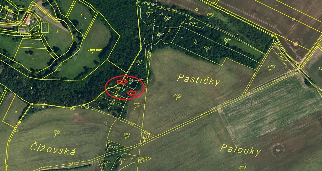 - p.č. 2150/5 vedená jako lesní pozemek o celkové výměře 606 m2 (stáří lesa 70 let - zastoupení dřevin borovice).