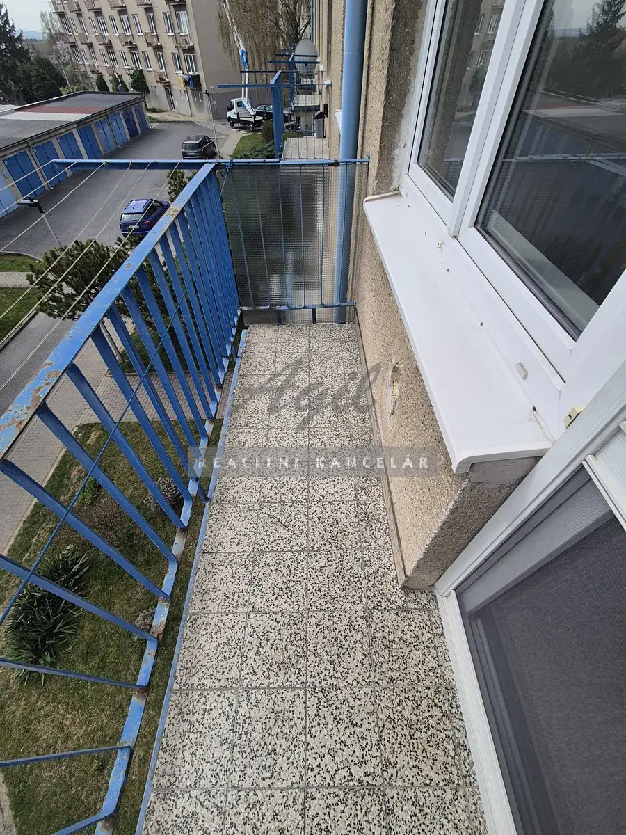 Předsíň, samostatné WC, koupelna, kuchyně s obývacím pokojem dohromady, ložnice se vstupem na balkon, sklep.
