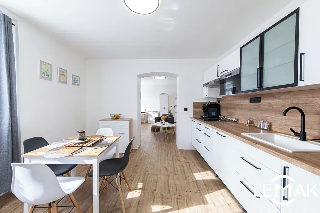 V zastoupení majitele nabízíme k prodeji zcela zrekonstruovaný byt 2+1 v obci Hynkov o celkové výměře 56 m2, který prošel kompletní modernizací v roce 2022. Během rekonstrukce byl byt vybaven novou vinylovou podlahou, moderní kuchyňskou linkou včetně myčky na nádobí, elegantní koupelnou a novou toaletou. Součástí rekonstrukce je také instalace nového elektrického kotle se zásobníkem teplé vody, nového rozvodu elektřiny v mědi, plastových oken a nových omítek. Celkové měsíční náklady bytu pro dvě osoby jsou 3 200 Kč. K bytu náleží spoluvlastnický podíl na zahradě domu, kde lze pohodlně parkovat nebo v letních měsících relaxovat. Výhodou této nemovitosti je také její strategická poloha – přímo před domem se nachází zastávka autobusu, který spojuje obec s Olomoucí a Litovlí. Potraviny jsou situovány ihned vedle domu.