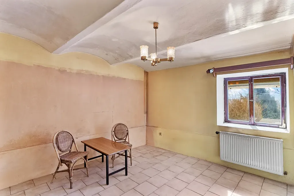 Přízemí: Vstupní zádveří, chodba, kuchyně a pokoj s klenutými stropy jako původním prvkem domu, koupelna (WC, sprchový kout, umyvadlo, přípojka na pračku) a další dva samostatné pokoje.