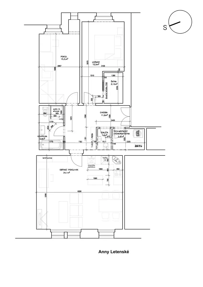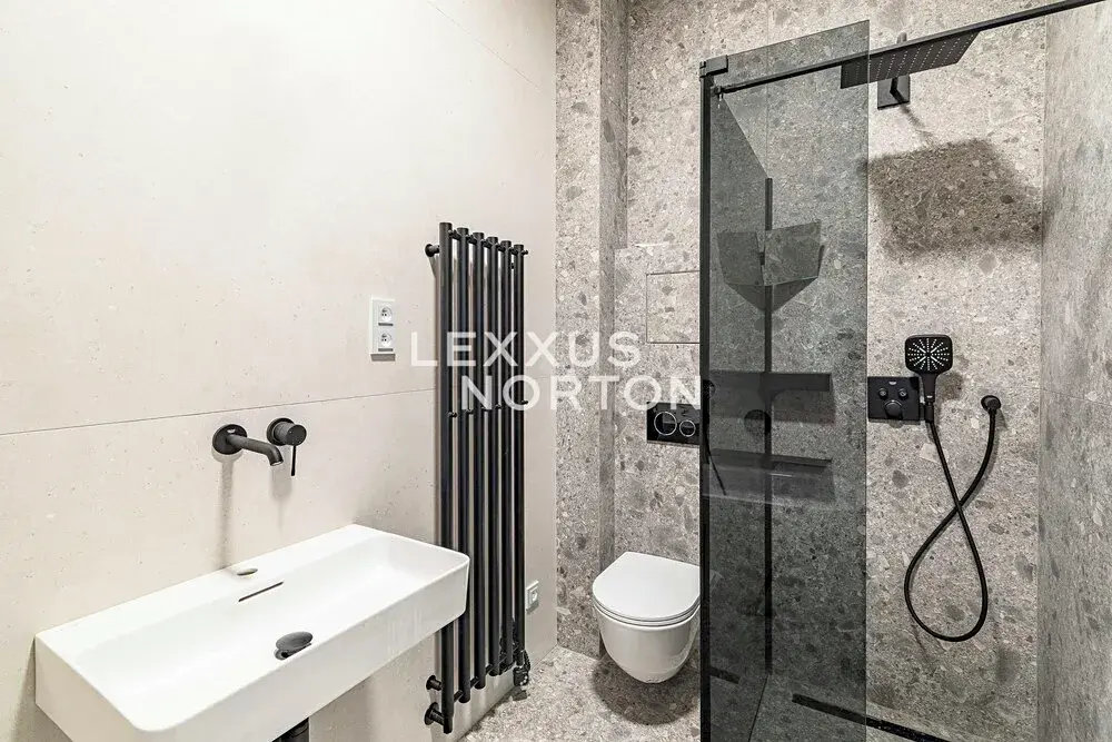 Dispoziční řešení bytu klade důraz na komfort i funkčnost. Centrální vstupní hala propojuje všechny místnosti. Dominantou je prostorný obývací pokoj (34 m2) se západní orientací s otevřeným konceptem jídelny a kuchyně. Dvě ložnice jsou orientované do tichého vnitrobloku na východ a jedna disponuje vlastní šatnou. Součástí bytu je koupelna v nadčasovém designu vybavená vanou, sprchovým koutem i toaletou. Praktické řešení bytu doplňuje samostatná toaleta a technická místnost pro domácí práce. Interiér všech místností je díky poloze ve vyšším patře velmi světlý.