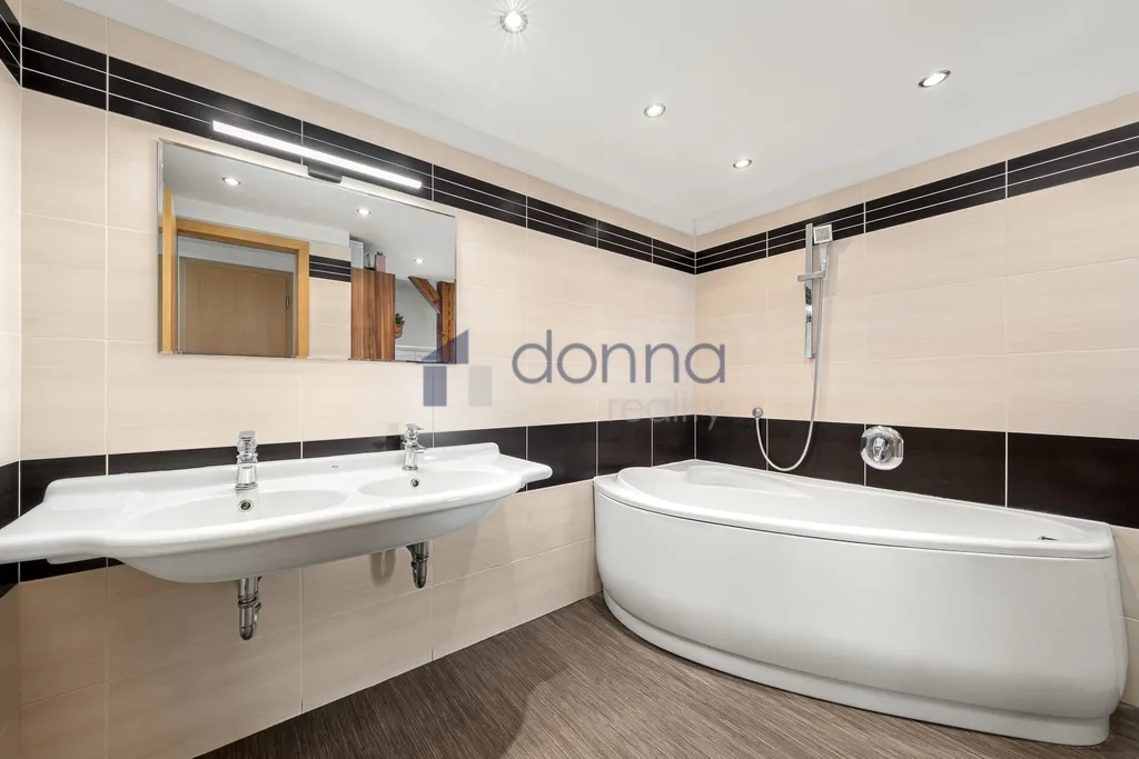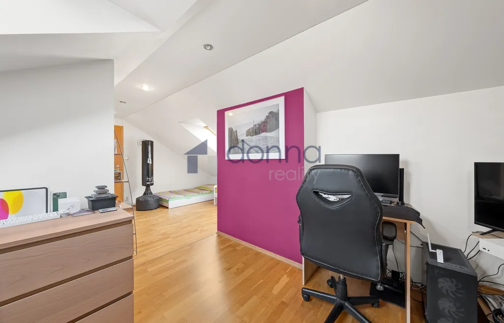 Horní mezonetové patro nabízí 2 samostatné pokoje se střešními okny dodávající přirozené prosvětlení.