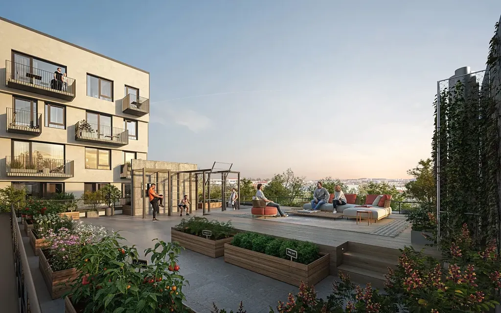Brno Jedna je více než jen dům, je to místo, kde se dobře žije. Střešní terasa s grilem, workout zóna, kolárna, prádelna i kočárkárna, to vše vám nabídne pohodlí městského života. V okolí roste nová čtvrť s parkem, cyklostezkami i službami. Centrum města pak máte na dosah za pouhých 5 minut MHD či autem.