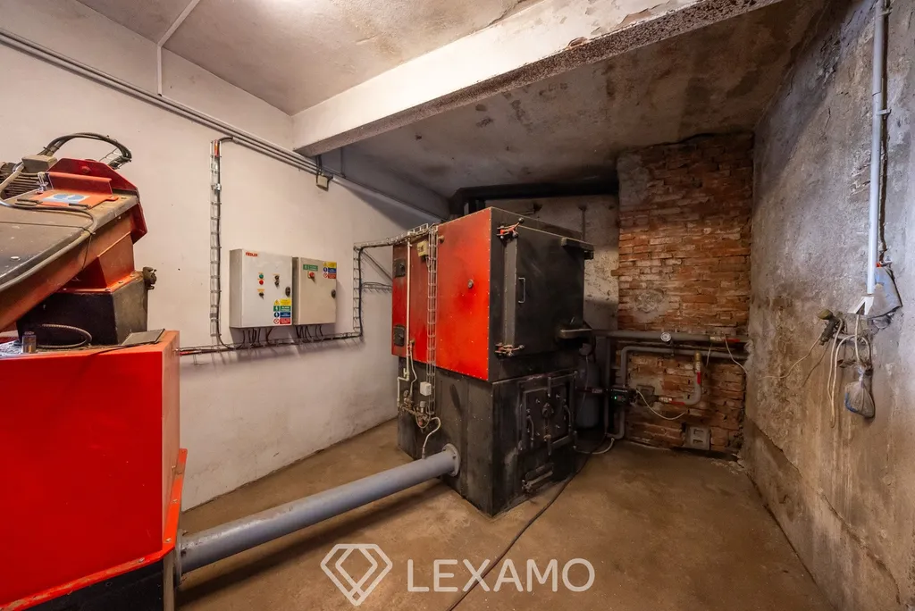Nemovitost je napojena na elektřinu a plyn, k dispozici je vlastní studna, odpad je řešen septikem. Vytápění zajišťuje kombinace kotle na biomasu o výkonu 150 kW a dvou plynových kotlů, které jsou minimálně využívané, což umožňuje flexibilní a efektivní provoz.