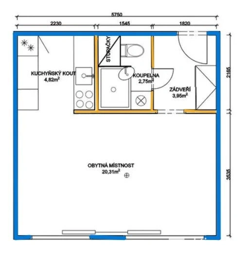 Vně bytu umístěna komora pro uskladnění všeho potřebného, součástí bytové jednotky je sklepní kóje.