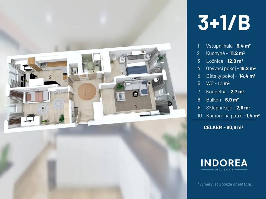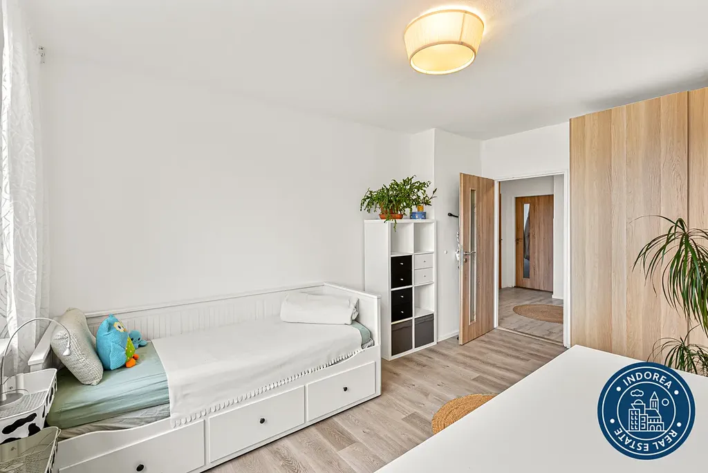 Byt o dispozici 3+1 s lodžií se nachází ve čtvrtém patře kompletně zrekonstruovaného a skvělé udržovaného panelového domu. K bytu náleží komora umístěná na patře přímo u bytu a také navíc ještě sklep. Další nespornou výhodou je sdílené parkování, které je vyhrazené pouze pro vlastníky bytových jednotek. A to hned za domem.