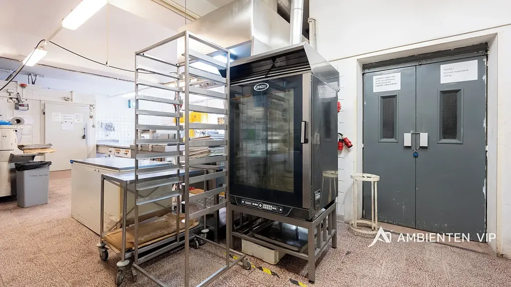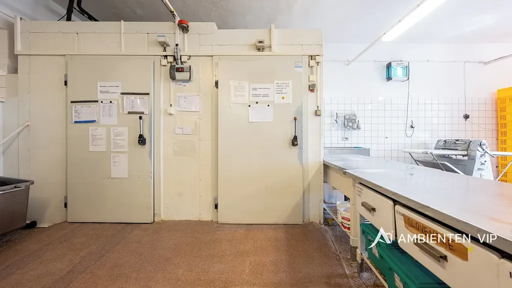 1. NP (391,65 m²) – výrobní a prodejní část: prodejna pekárny, prodejna občerstvení, kancelář, nákladní výtah, dílna, sklady, zázemí, mísírna, kynárna