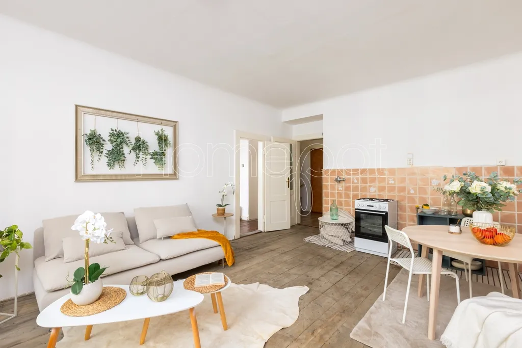 Byt je v původním, udržovaném stavu a je připravený k rekonstrukci – a právě to je jeho největší přednost. Můžete si ho upravit tak, aby stoprocentně vyhovoval vašim potřebám. Podlahy jsou původní, místy vržou, nejsou perfektní – ale právě v tom je jejich kouzlo. Plynový sporák, který je majetkem bytového družstva a bude potřeba ho vrátit, vás tu každopádně strašit nebude. Jakmile bude byt váš, poputuje zpátky tam, kam patří. Byt doplňuje koupelna se sprchovým koutem, samostatná toaleta, předsíň a nenápadná spíž, která pojme všechno, co nechcete mít na očích. Součástí je i velkorysý sklep.