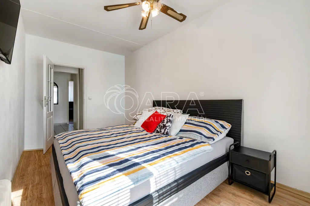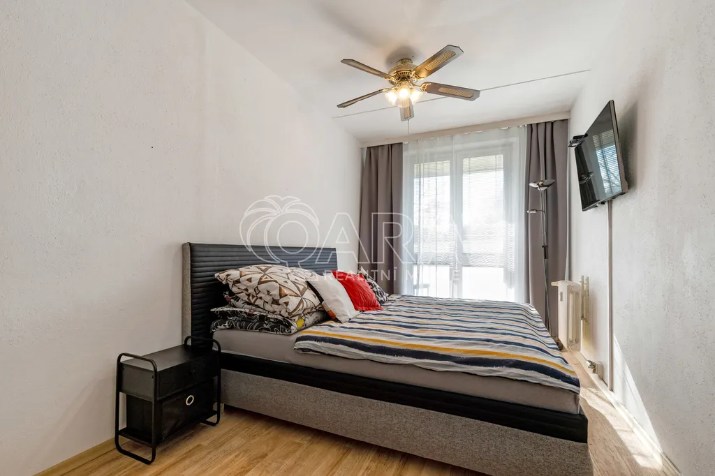 Samotný byt se nachází v 1. patře zatepleného panelového domu s výtahem a skvěle fungujícím SVJ. Dispozice bytu je velmi praktická – z chodby se dostanete do všech místností. Obývací pokoj a kuchyně jsou separátní, obě ložnice jsou dostatečně prostorné a neprůchozí. Koupelna disponuje rohovou vanou, prostorem pro pračku, toaleta je oddělená. Jednotka je celkově ve velmi dobrém a udržovaném stavu. Navíc máte k dispozici i balkon, kde si v budoucnu můžete vychutnávat příjemné chvilky na vzduchu. K bytu náleží komora v chodbě na patře a dále sklepní kóje v suterénu domu.