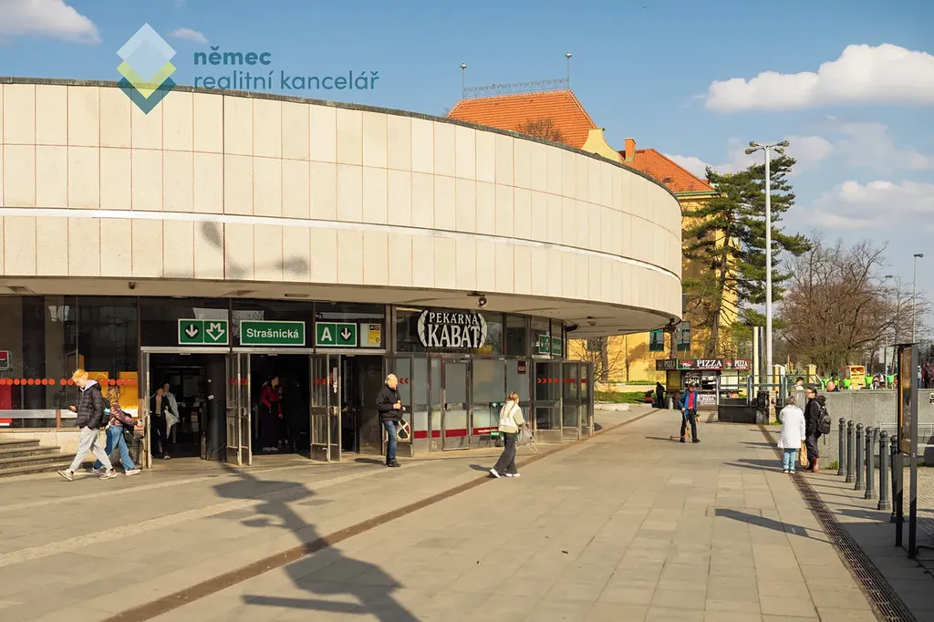 Byt je umístěn na velmi strategickém místě - výborná dostupnost MHD (stanice metra Strašnická 7 minut chůze - spojení jen 10 minut do centra; zastávka autobusu Štěchovická 2 minuty chůze od domu). Veškerá občanská vybavenost v místě bydliště - škola i školka za rohem, stejně tak Park Gutovka (beachvolleybal, bruslení, lezecká stěna, dopravní hřiště..). Obchody Billa, Tesco i Albert jsou po ruce. Za zmínku stojí i Sokol Strašnice (sport pro děti i dospělé.). Klidná, tichá, čistá lokalita (nejsou slyšet tramvaje ani auta), zeleň všude kolem.