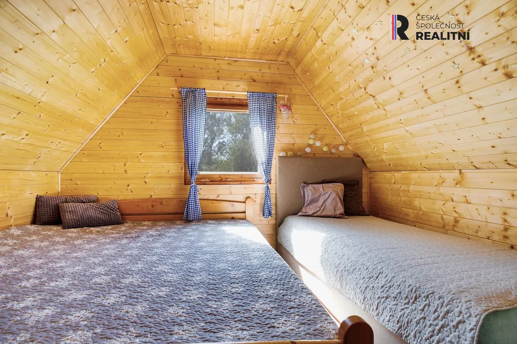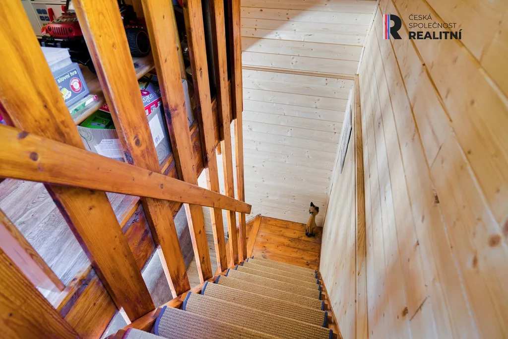 Obložení celého interiéru palubkami, nová kamna, Naftové nezávislé topení (bufík) s 10 l nádrží na autobaterii s regulací času a termostatem teploty - nemovitost se velmi snadno vytopí a je využívána i v zimních měsících.