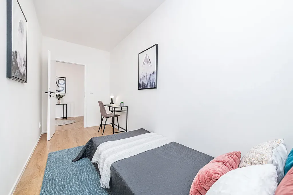 Dispozici bytu tvoří tři neprůchozí ložnice, velkorysý obývací pokoj spojený s kuchyní, prostorná koupelna se sprchovým koutem a samostatný záchod.