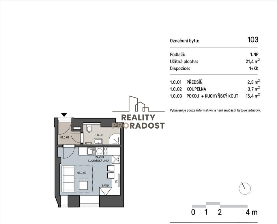 Pronájem bytu 1+kk, Brno, Mathonova, 22 m2 (ID: 2123498)