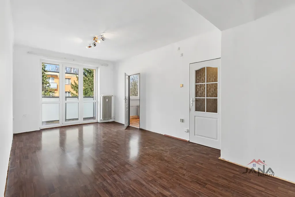 V původním, ale udržovaném stavu, takže je možné jej ihned obývat nebo rekonstruovat dle vlastních představ. Z chodby je vstup do obývacího pokoje se vstupem na balkon. Z obývacího pokoje se vstupuje do ložnice a dalšího pokoje. Do kuchyně je vstup jak z chodby, tak z obývacího pokoje. Koupelna s vanou a umyvadlem, samostatné WC a v předsíni dostatek úložného prostoru. Vytápění je dálkové, ohřev vody plynovým průtokovým ohřívačem.