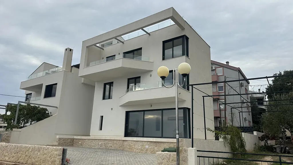 Dovolujeme si Vám nabídnout k prodeji nádhernou novostavbu vily s terasami a výhledem na moře, situovanou v klidné části města Zadar v Chorvatsku. Poloha vily je ve velmi výhodné první řadě u moře. Tato samostatně stojící patrová vila nabízí dva apartmány 3+1, o výměře 119,46 m2 a 97 m2 s pěti koupelnami, (lze předělat na tři apartmány) každý apartmán má terasu nebo velký balkon Vila je ideálním místem pro ty, kteří hledají klidné bydlení, nebo odpočinek na dovolené mimo rušné městské prostředí. Nová pláž je 10m od vily.